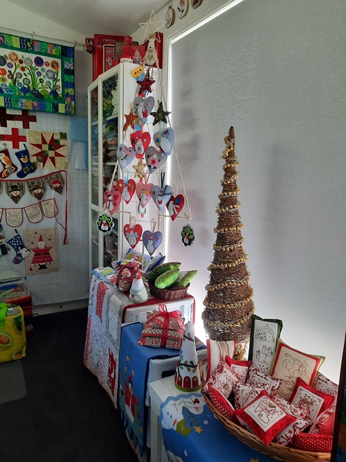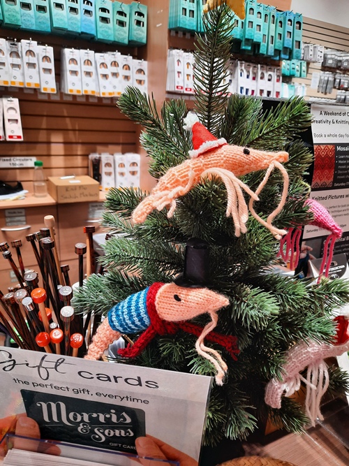 Of course I found a craft shop. This is where the knitting comes in. Prawns decorating a Christmas Tree in Morris and Sons. And the pattern for the prawns was free. We did find quite a few things to buy in that lovely shop.