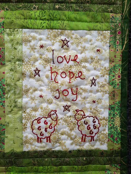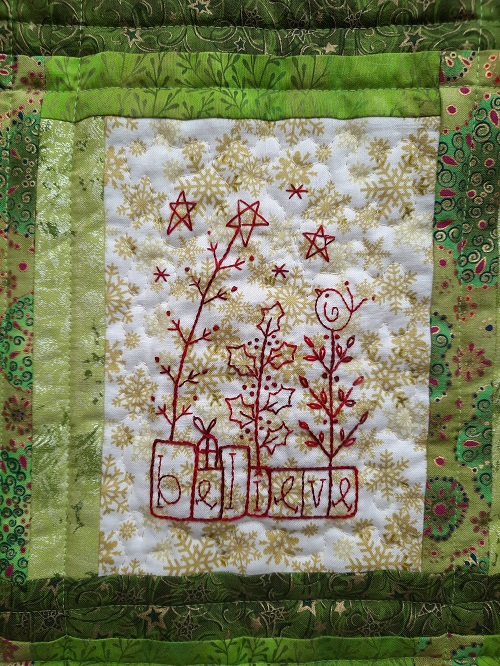 Gail’s original uses red fabric which looks great. I went down the green path instead.