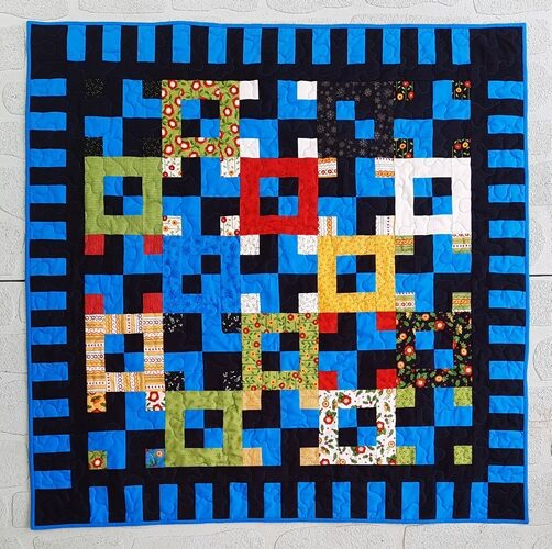 And that’s the way it stayed until this month. It was one of my UFO collection. It has now seen the light of day again and has been backed, quilted and bound. At last.