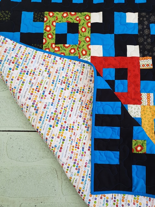 Backing was a piece from my stash, as was a suitable blue for the binding.